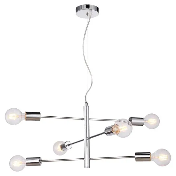 Артикул: LSP-8154; Бренд: Lussole; Серия: HURON; Стиль: Модерн; товарная группа: Люстра подвесная; Тип крепления: Планка монтажная; Степень защиты: IP20; Общая мощность, W: 360; Количество ламп: 6; Тип ламп: без ламп; Тип цоколя: E27; Max мощность лампы, W: 60; Световой поток, Lm: не применимо; Материал каркаса: металл, Металл; Материал плафона: Без плафона, без плафона; Цвет каркаса: хром, Хром; Лампы в комплекте: без ламп; Вес, кг: 1,9; Штрихкод: 4690304028082